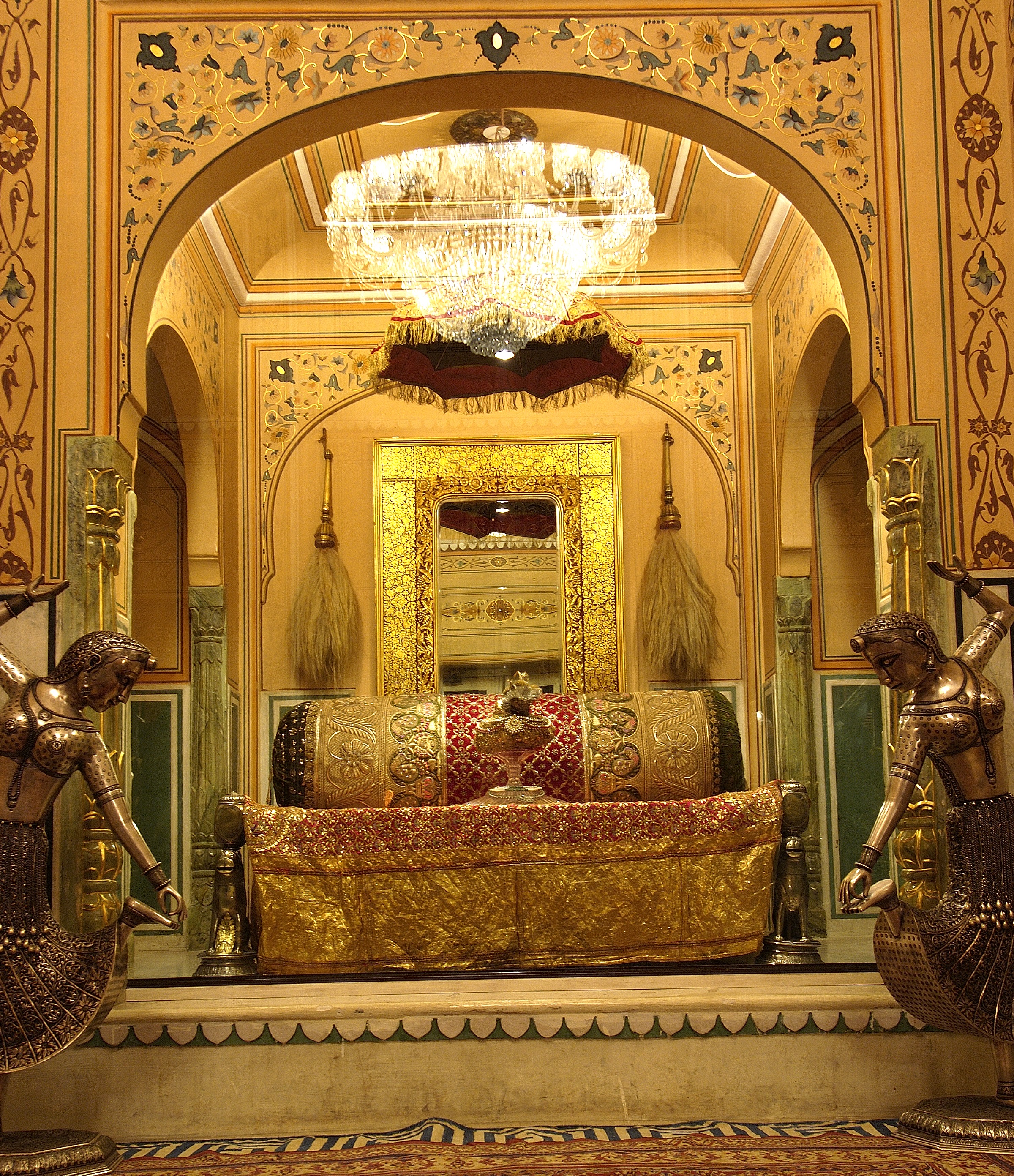 Voted the World’s Leading Suite (2007–2014), the Maharajah Pavilion is a four-story private palace within The Raj Palace. With its own Charbagh entrance and private elevator, it features four regal bedrooms, a lavish Durbar, multiple lounges, and a rooftop terrace with a Jacuzzi, spa, and swimming pool overlooking Jaipur. The second floor, once the Maharajah’s personal quarters, retains its gold-and-silver furniture, mirrorwork walls, and vaulted royal bedroom. The suite houses a priceless private museum with the original throne and royal bolsters. From butler-attended dinners to private receptions, the Pavilion is not just a stay—it’s a sovereign experience.